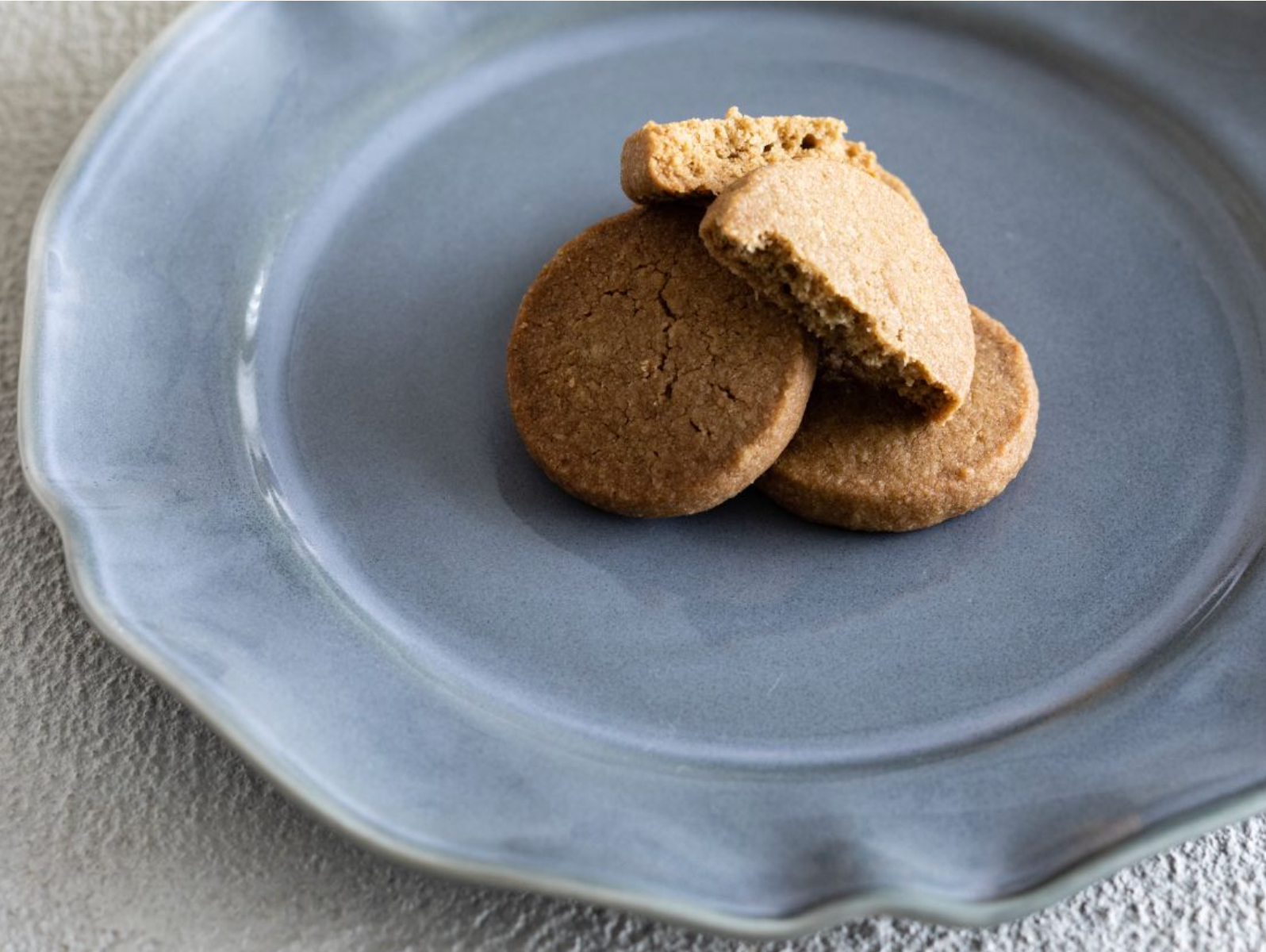 米粉「ミズホチカラ」とアーモンドパウダー、小麦粉「エクリチュール」を絶妙なバランスで合わせ、サクサクほろほろっと崩れる食感を実現しました。さらに上質なセイロン紅茶の風味、香菜の種を乾燥させたスパイス、コリアンダーの爽やかでスイートな香りの余韻もお楽しみいただけるクッキーです。