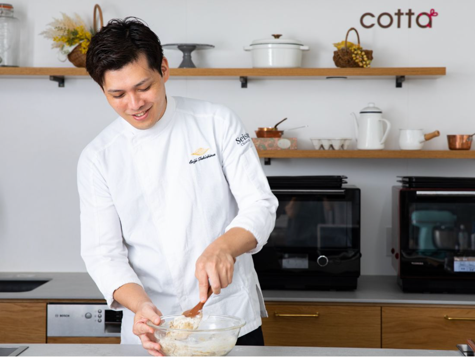 瀧島誠士シェフは、自身のブランド「Seiste」を掲げ、店舗にこだわらず自由なスタイルで活躍中のパティシエです。そして、cotta tomorrowは、“あなたと、あしたに、ちょっといいもの”をコンセプトに、植物由来を中心とした、グルテンフリーやオーガニックといった多様なニーズに応えるECメディア。入手が難しい製菓・製パン素材をはじめ、プロ仕様の製品も手広く扱い、プラントベースやお子さまに多いアレルギーに配慮したレシピの数々を発信しています。