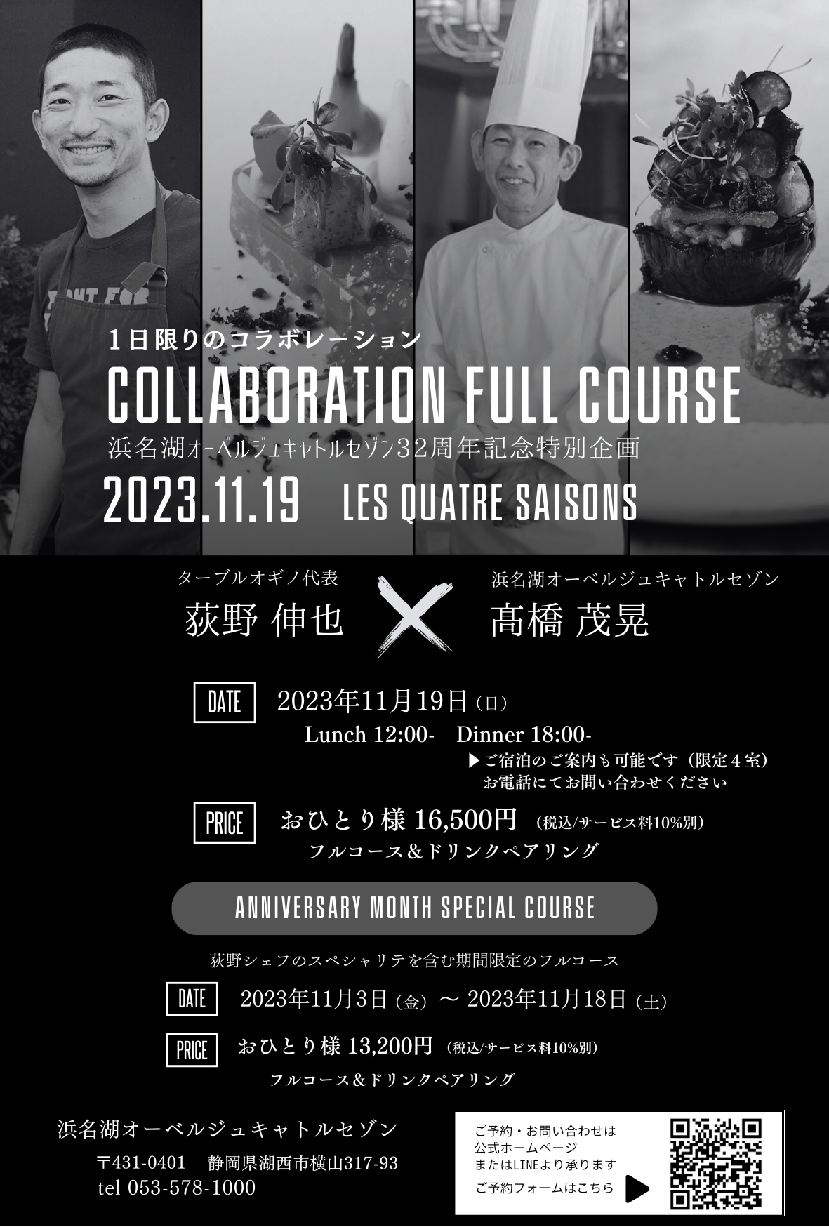 上記以外の日程でも、期間限定で荻野シェフのスペシャリテを含む限定フルコースをお楽しみいただけます。