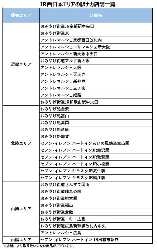 JR西日本エリア 駅ナカ店舗限定・数量限定