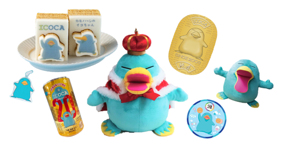 「ICOCA 20周年」をお祝いするイコちゃんグッズとして、2023年7月に22商品、10月上旬に7商品を