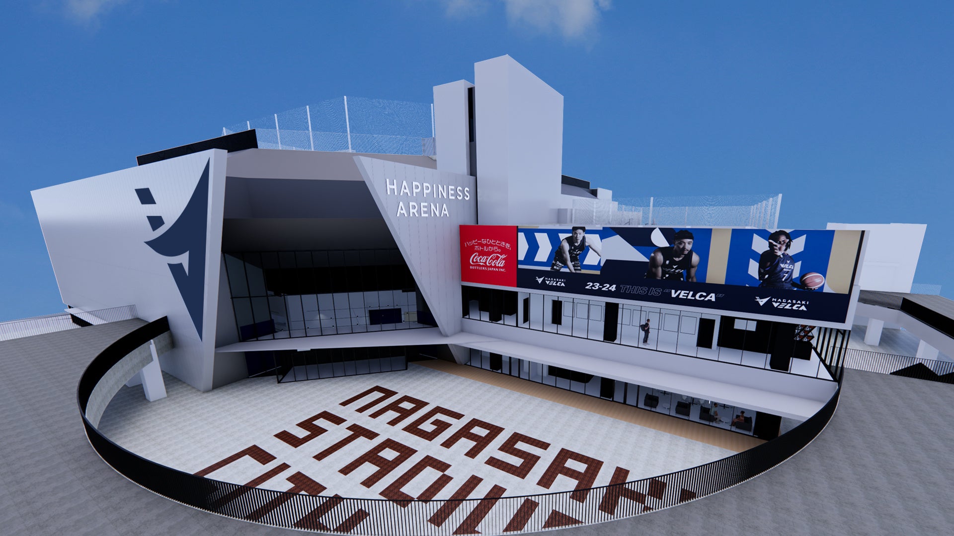 長崎スタジアムシティ 新アリーナでは、長崎ヴェルカのホームゲームはもちろん、音楽コンサートや展示会など多種多様なイベントを開催していきます。また、会場内外のビジョン、音響、照明などの演出にもこだわりエンターテインメント性を追求すると共に、コカ・コーラ ボトラーズジャパンと協力し、来場されるお客様に感動と喜びを提供していきます。長崎スタジアムシティのアリーナからたくさんのHAPPINESSを創り出し、発信していきたいという想いと新たな価値を創出する次世代アリーナを構築したいという想いのもと、アリーナを「HAPPINESS ARENA」と名付けることにしました。