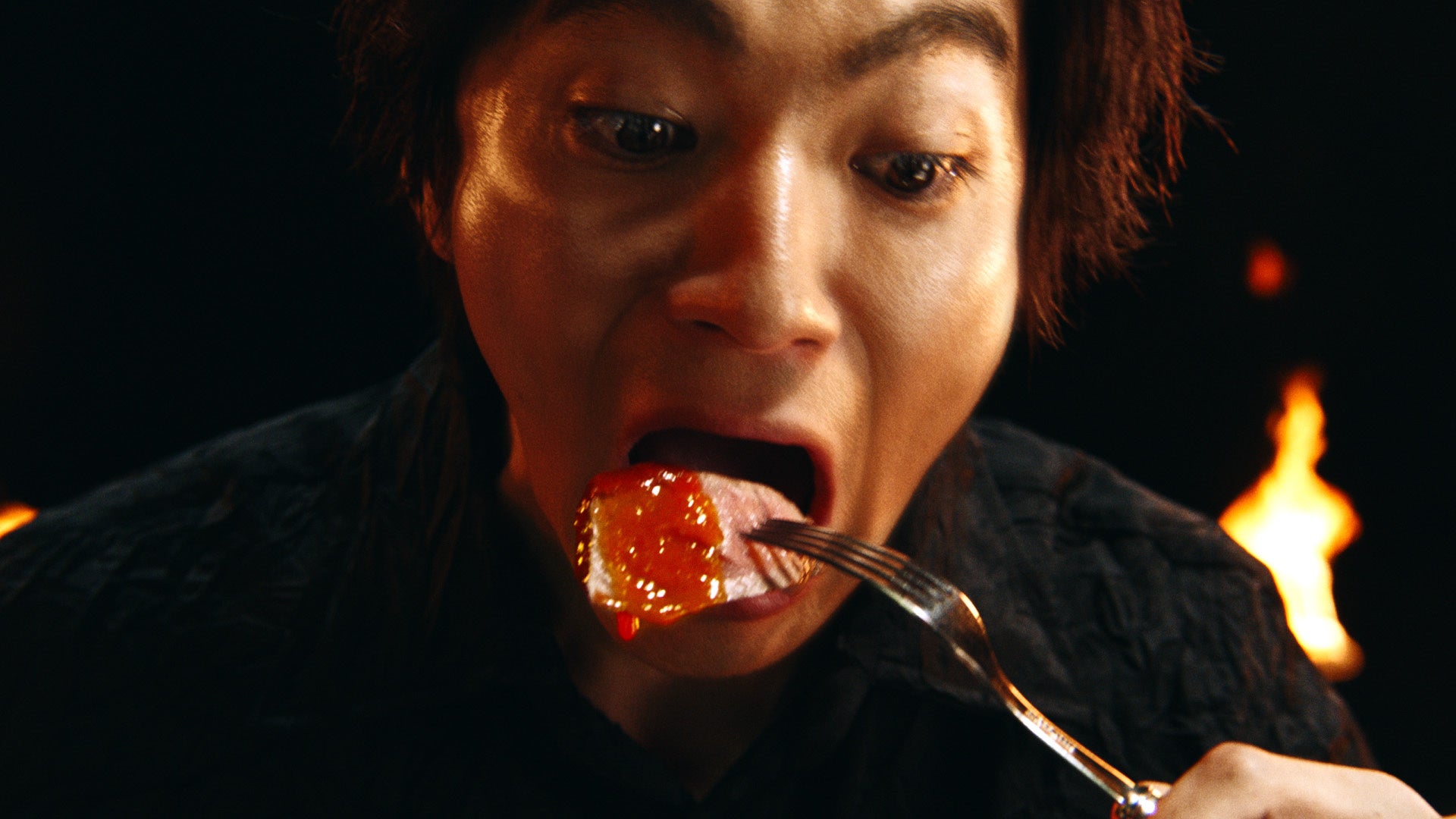 新TVCMには実力派俳優の山田裕貴さんが、「日本の辛味ソースのど真ん中!」と魂の絶叫を披露。「おいしい唐がらしソース」をたっぷりとかけた大きなホットドックにかぶりつく姿や、極厚のステーキに「おいしい唐がらしソース」をたっぷりとディップして頬張る姿を見せます。ひとり時間に辛味タイムを堪能し、心が解放されたかのような山田さんの姿を通じ、「おいしい唐がらしソース」の美味しさと魅力をお伝えする内容となっています。