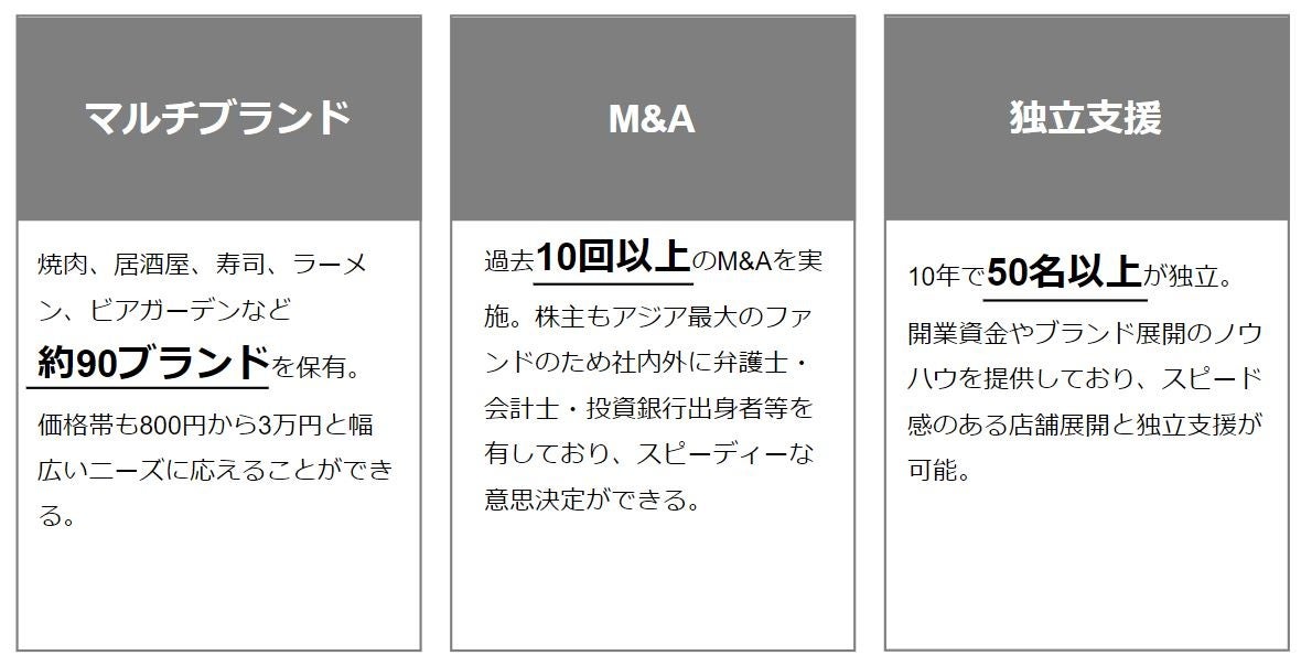 GYRO HOLDINGSは約90ブランドを保有する飲食グループで、新規出店の他に「M&A」を重要な成長戦略と位置付けて、積極的な事業展開を推進しています。