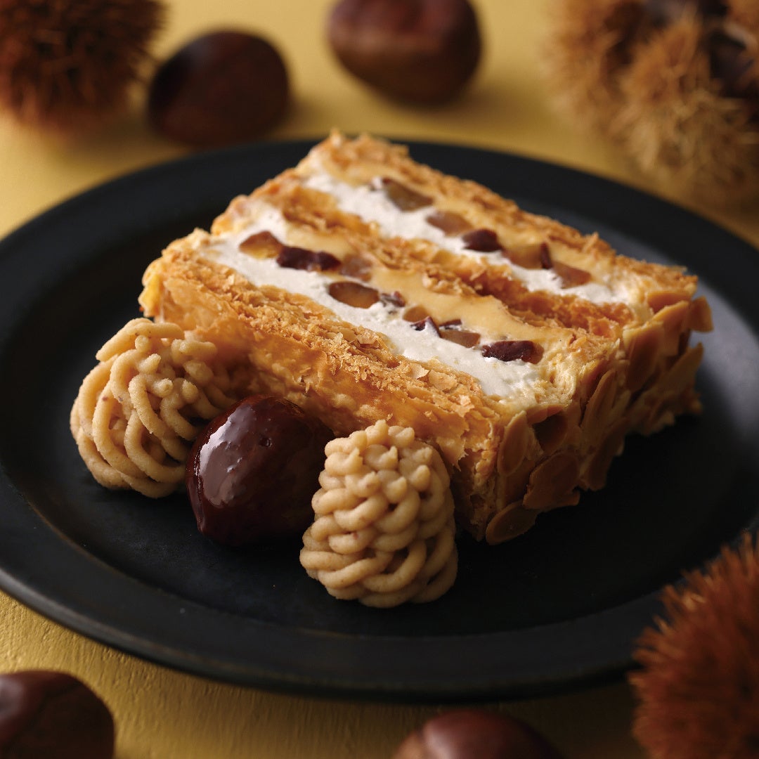 ナポレオンパイを栗でアレンジした「KIHACHIのマロンパイ」がフルサイズでお楽しみいただけるKIHACHIの