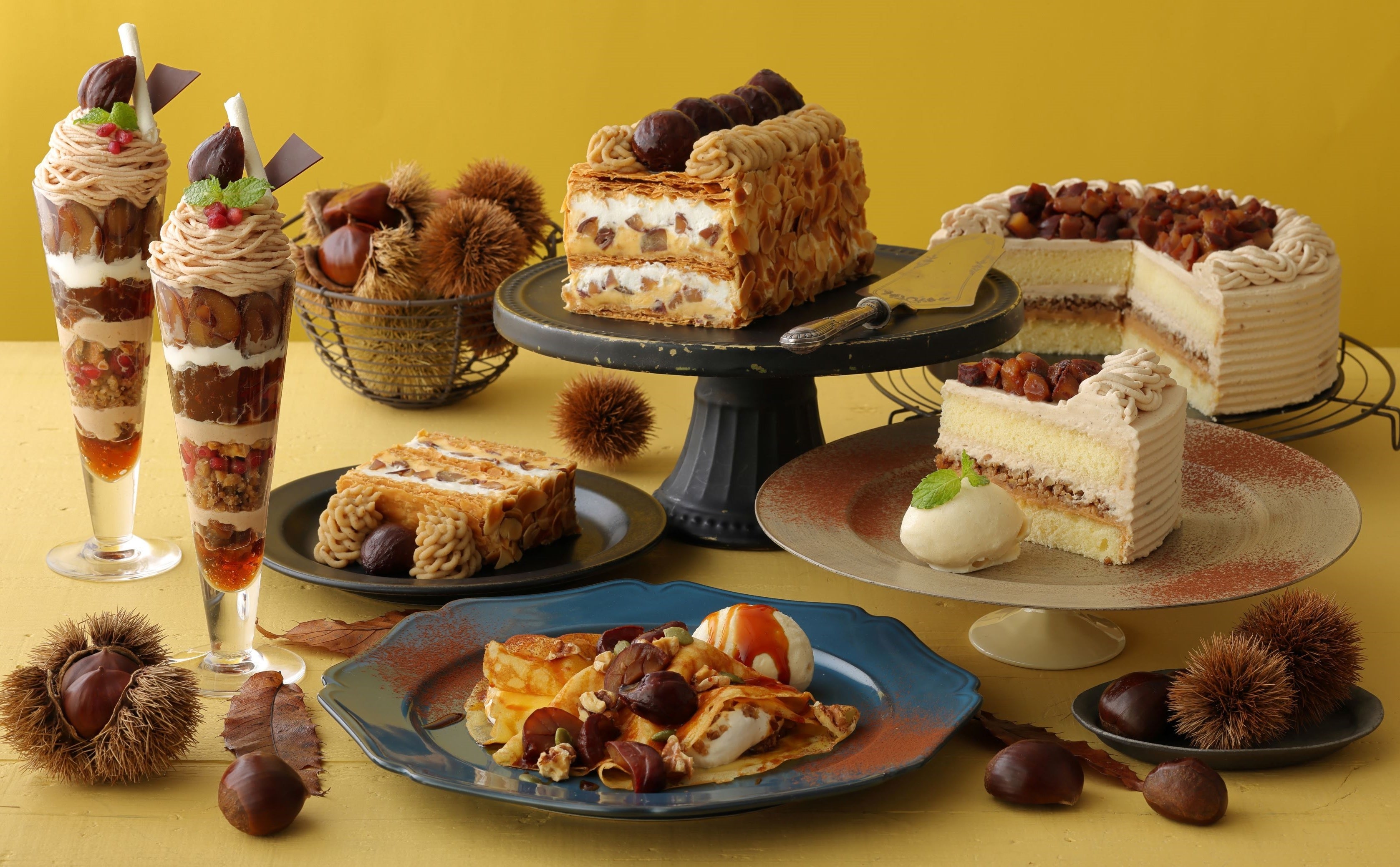 “栗”を主役に、4種のスイーツ(パフェ、パイ、クレープ、ショートケーキ)を提案