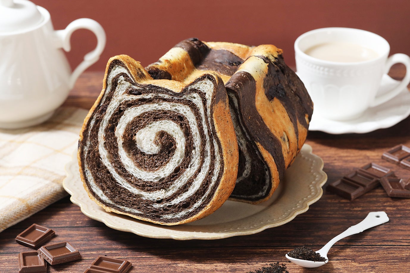アールグレイの茶葉を練り込んだ紅茶生地と、チョコチップ入りのチョコ生地をぐるぐると巻いて焼き上げました。アールグレイの爽やかな柑橘の風味がチョコのコクを引き立てるねこねこ食パンです。ほっと落ち着いた気持ちにさせてくれるねこねこ食パンで、冬のはじまりをお楽しみください。