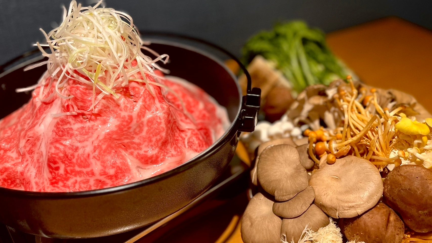 「黒毛和牛のすき焼き」霜降&赤身の2種食べ放題に、10種類のキノコで秋の味覚を贅沢に!