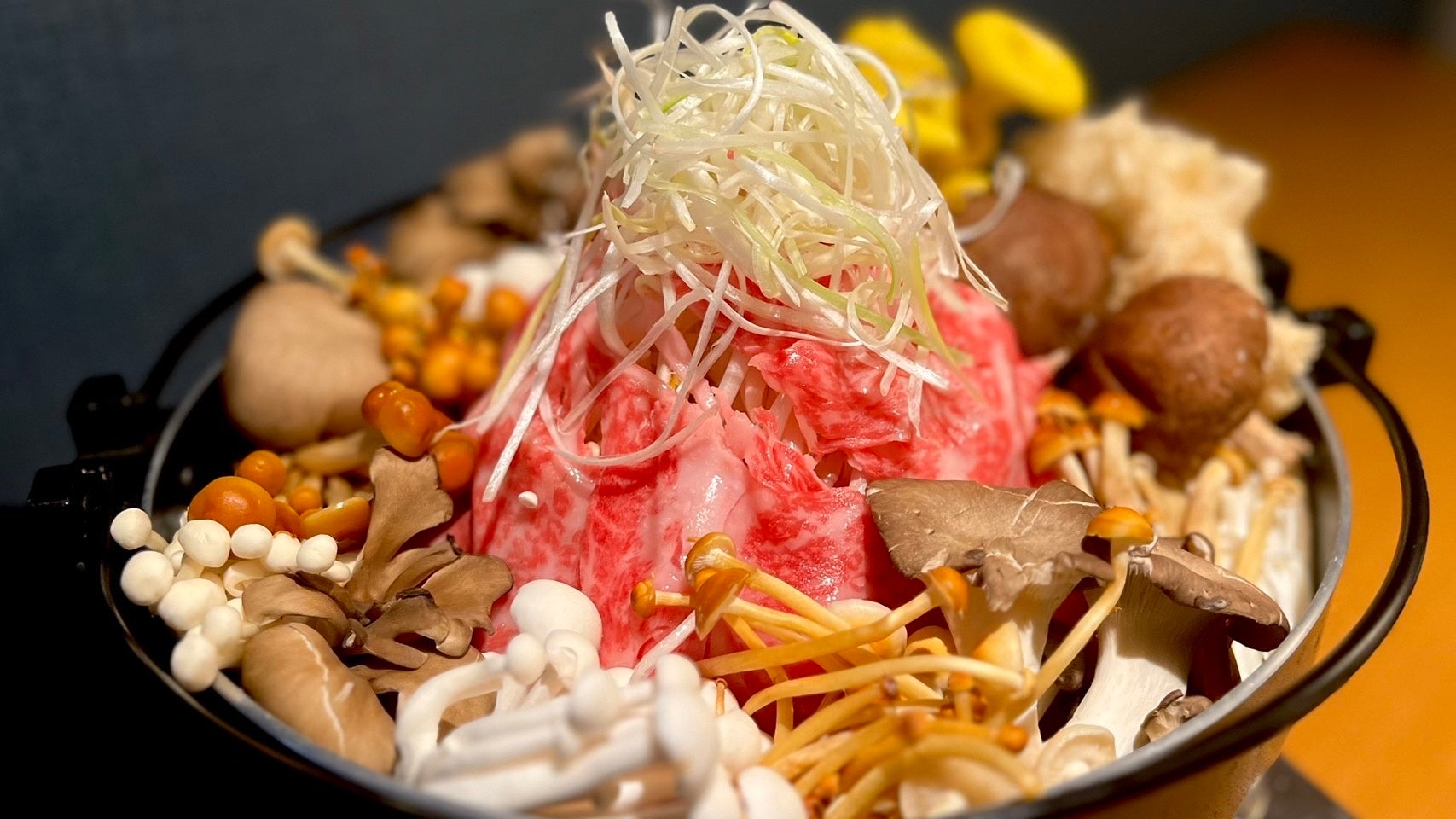 「黒毛和牛のすき焼き」霜降&赤身の2種食べ放題に、10種類のキノコで秋の味覚を贅沢に!