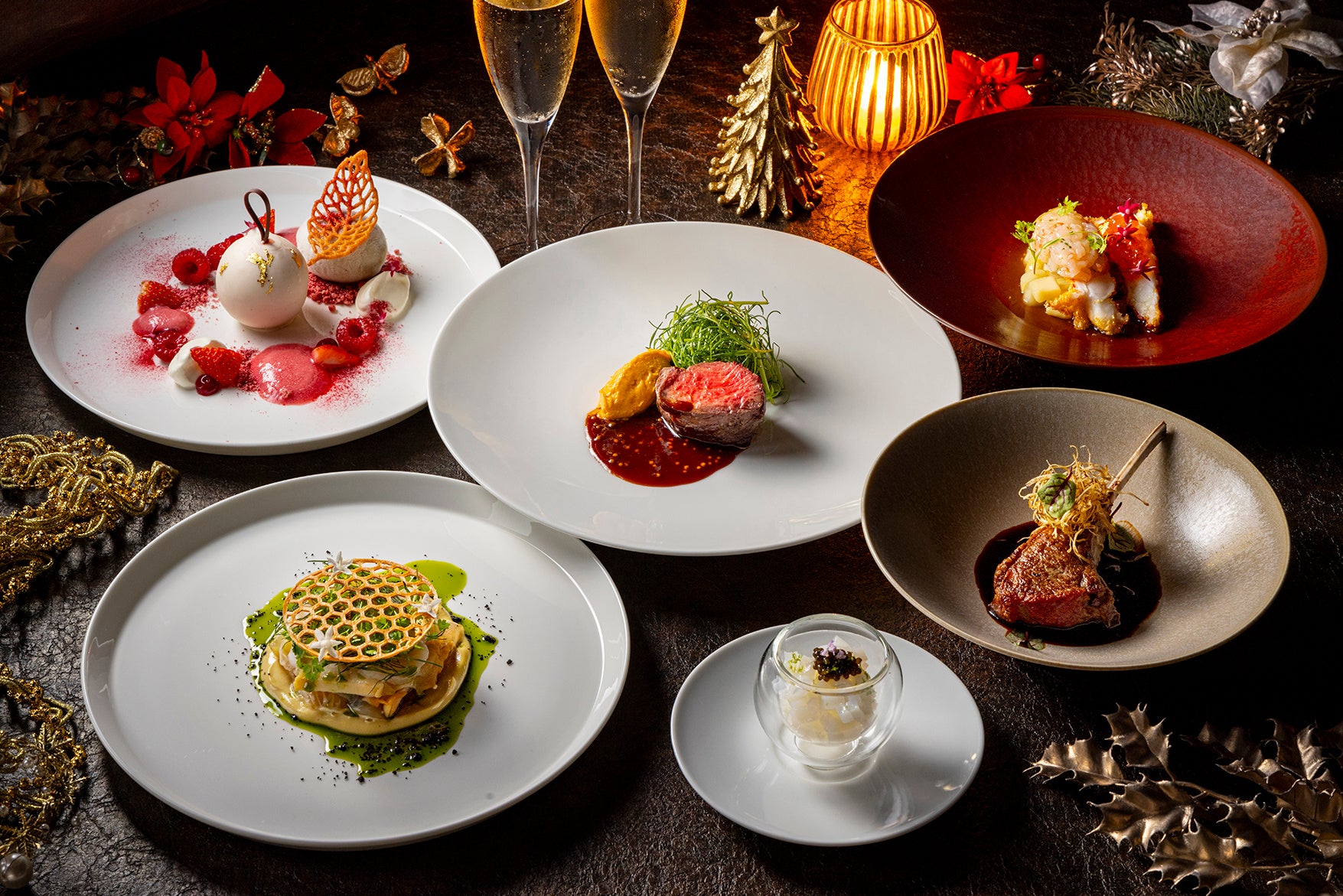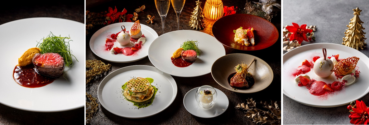 本年は、洗練さと満足感を追求し、身も心も豊かに満たす、ボリューム感たっぷりのクリスマス限定コースをご用意しました。まるでダブルメインのような“牛×ラム”の組み合わせは、贅沢の限り。オーストラリア ビクトリア州公認のラム親善大使であるシェフ福田がお届けする、2nd Entrée (温前菜) のラムチョップは、プルマン東京田町でしか味わえない逸品です。