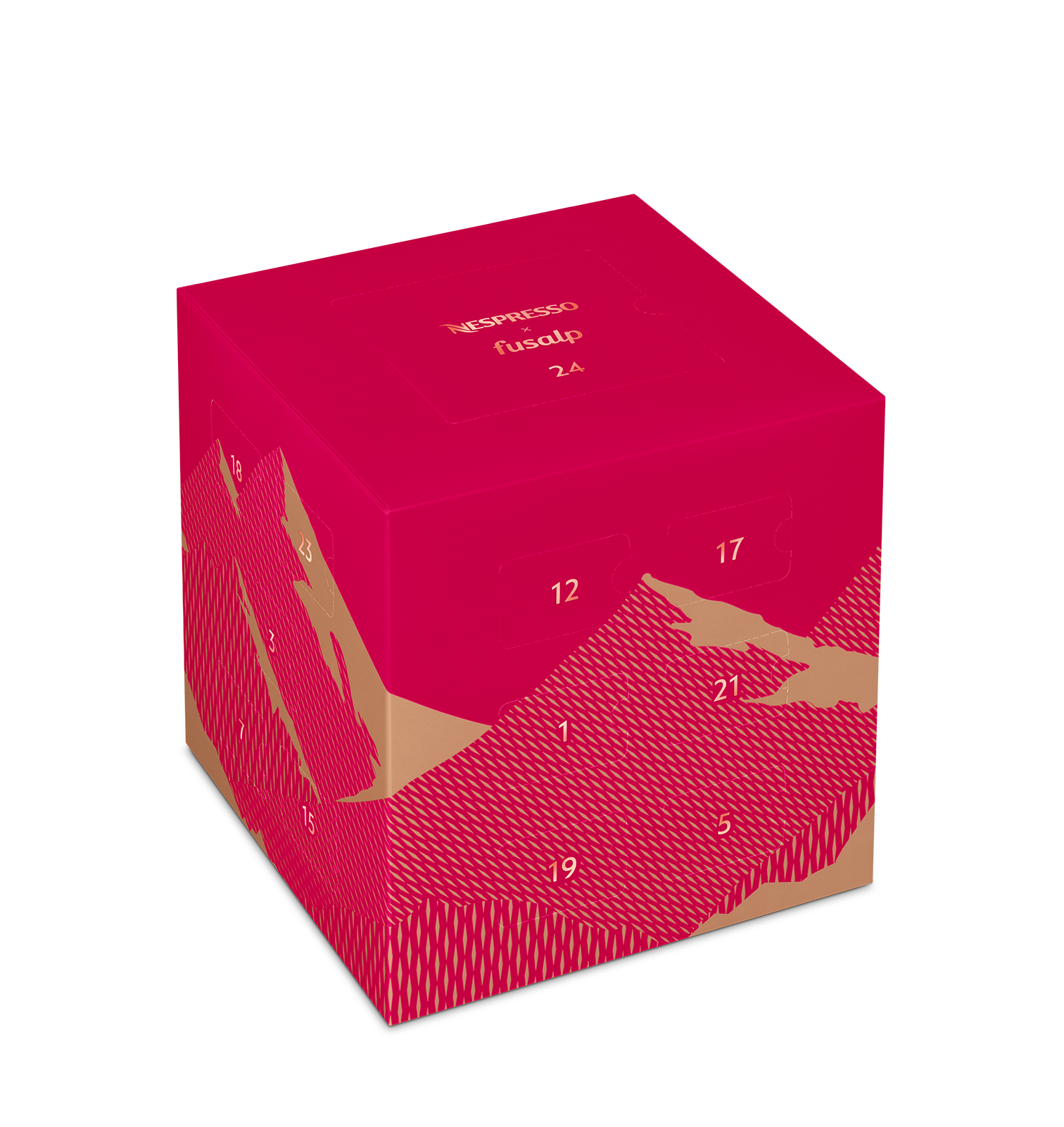 「Fusalp」を象徴するエレガントなダイヤモンド・スモック柄を施したアルプスの山のデザインが目を惹く、今年限定のアドベントカレンダーです。12月1日から23日まで、心踊るクリスマスまでのカウントダウンを毎日異なるコーヒーで楽しむことができ、24日には特別なギフトが現れます。自分へのご褒美として、また大切な人へのギフトなどにもおすすめです。