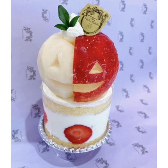 フルーツケーキの上にりんごと梨の紅白オバケが乗った、高さ約12cmもある食べごたえあり、インパクト大のハロウィン限定ケーキ♪