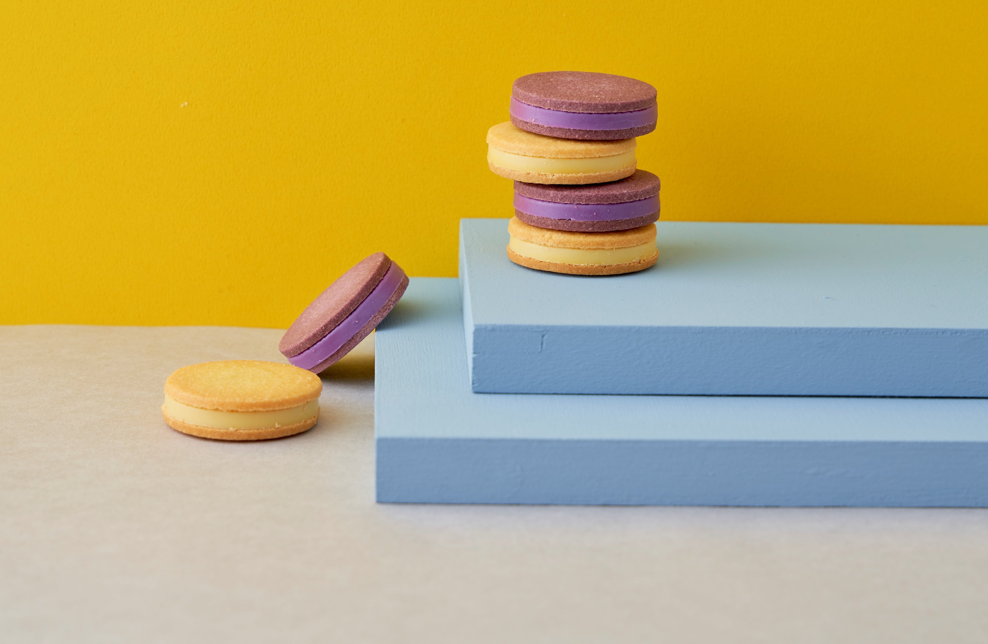 目を惹くパープルカラーが映える!「おいもサブレサンド」