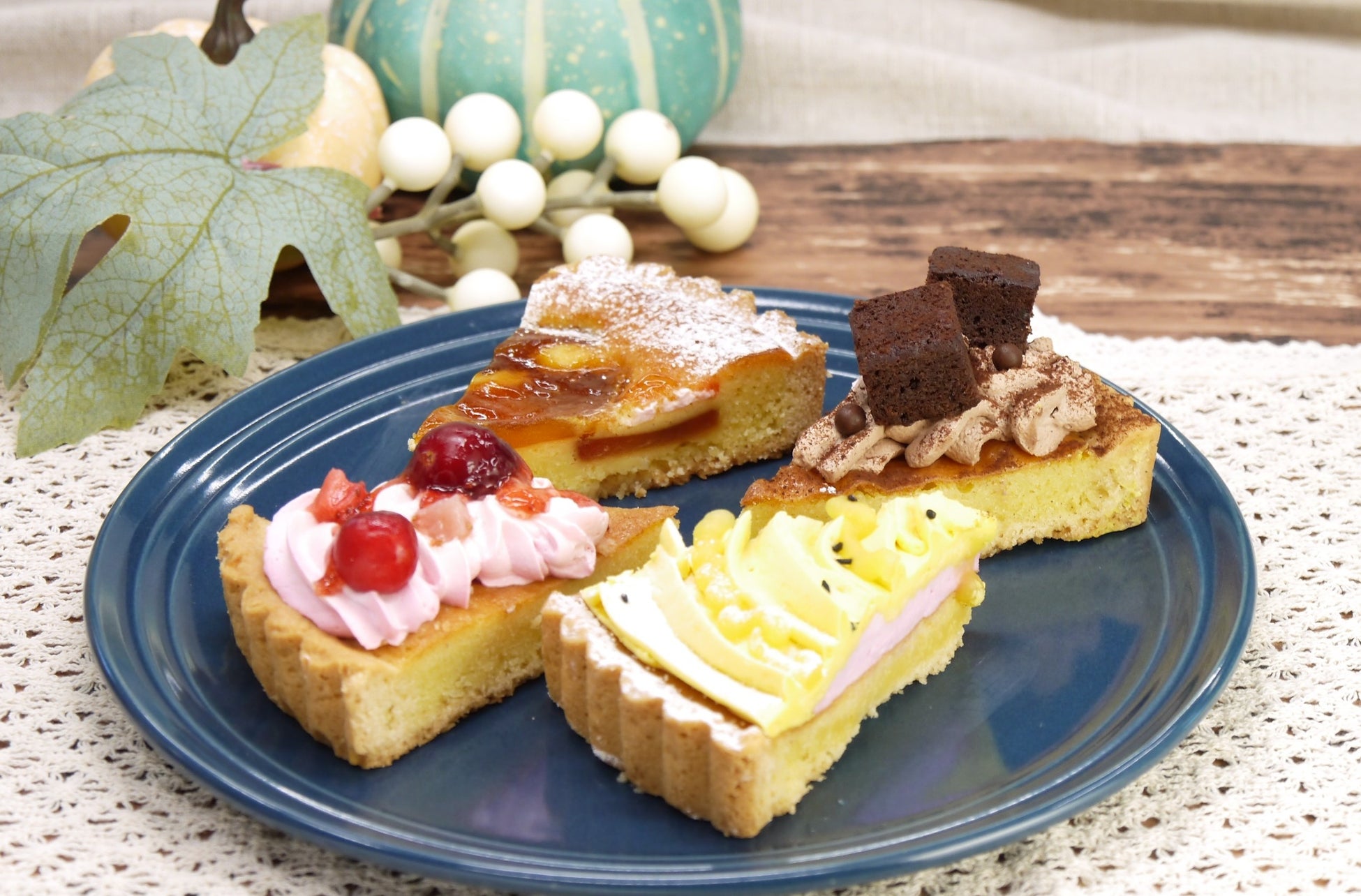 秋の味覚やベリー、チョコを使用した、子どもから大人まで楽しめるハロウィン向けアソートタルトです。「キャラメルリンゴタルト」「ベリータルト」「チョコブラウニータルト」「蜜芋と紫芋のタルト」の4種類を詰め合わせています。