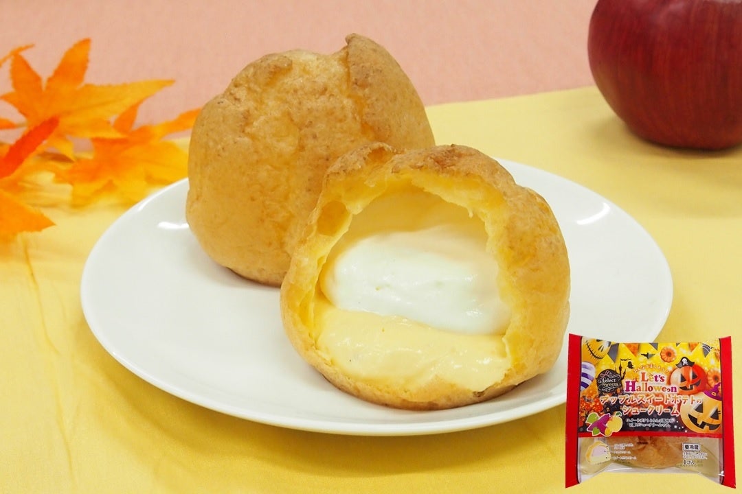 こんがりと焼き上げたシューパフに、鳴門金時芋餡を使用したスイートポテト風味のクリームと、りんごジャムを練り込んだアップルクリームを詰め混んでいます。