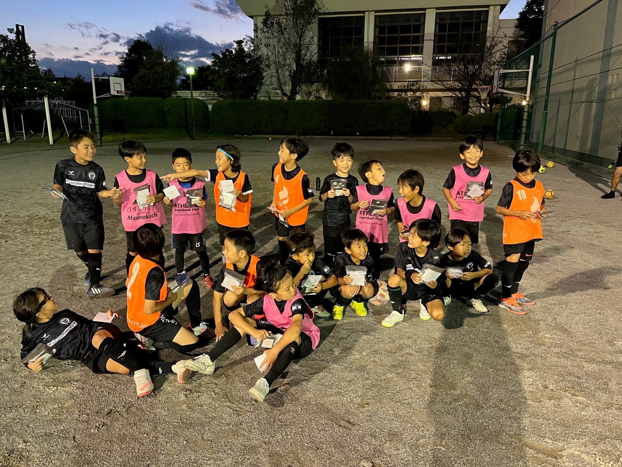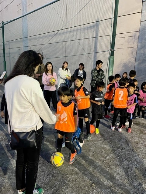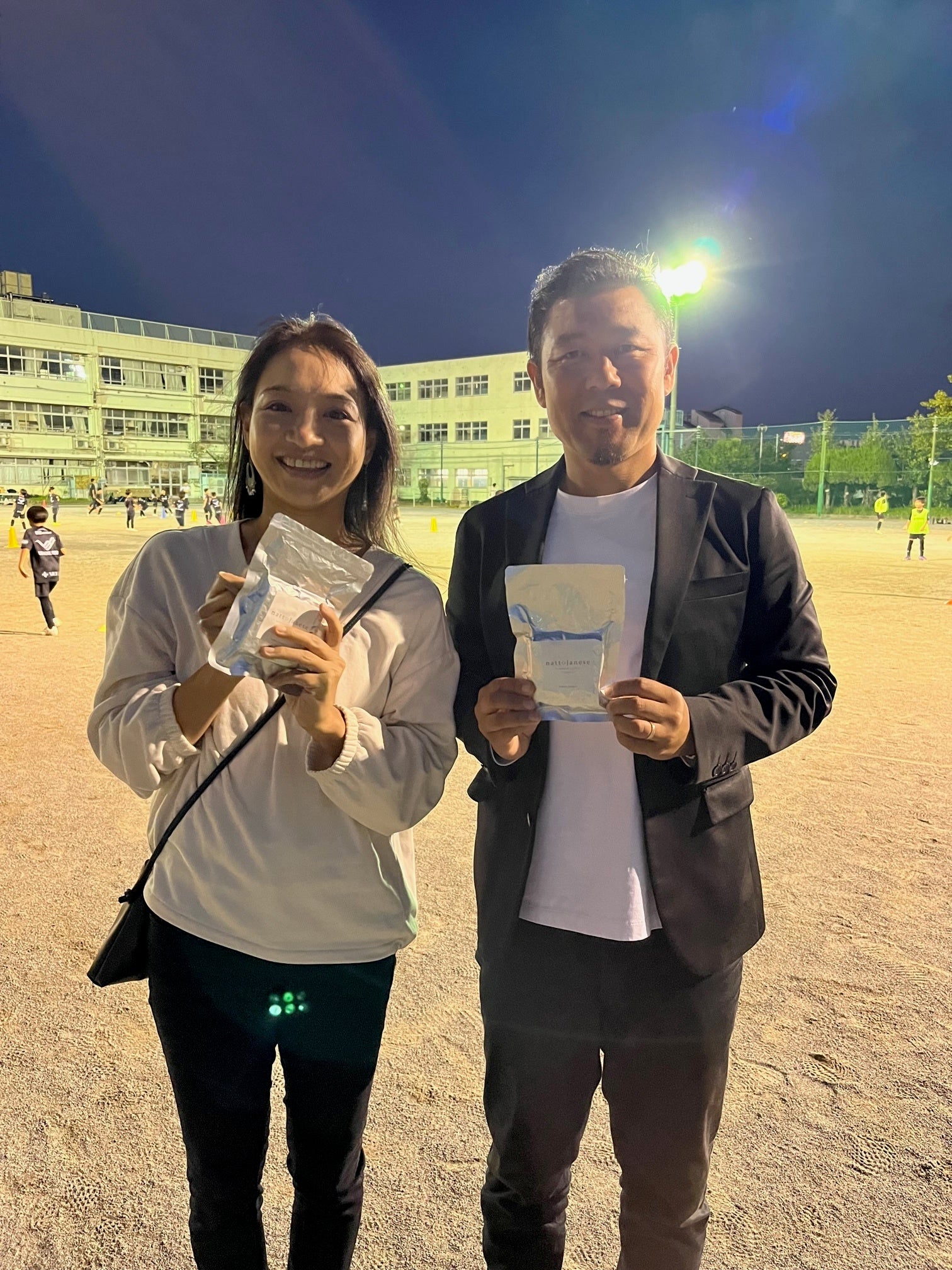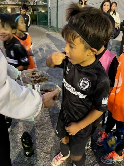 大森FCの小学校低学年の練習を訪問、子どもたちと小島社長にナットージャネーゼをお渡しし、小学校1‐2年生の部では実際にナットージャネーゼを試食していただきました。また保護者の方を対象にジュニアアスリートのたんぱく質や発酵食品の摂取に関するアンケートを配布しました。