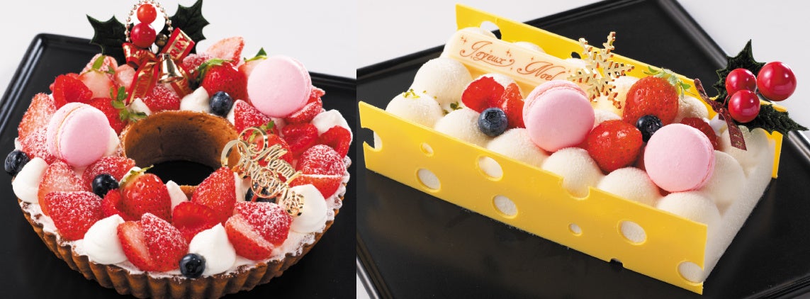クリスマスらしい定番の「ガトー・フレーズ」や「ブッシュ・ド・ノエル」のほか、新作「リースタルト」や装いも新たな「ガトー・フロマージュ」、など、人数やお好みに合わせて選べる全8種を取り揃え。どのケーキもクリスマスにふさわしい華やかな仕上がりです。