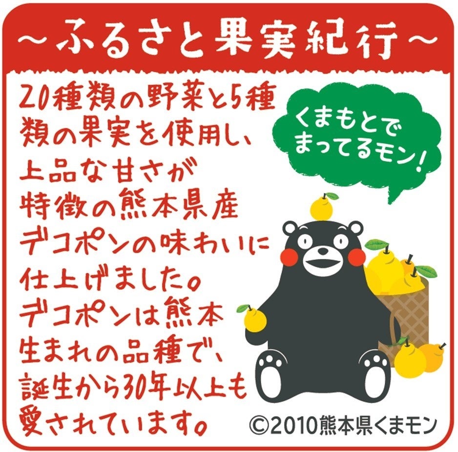 「野菜生活100 熊本デコポンミックス」は、上品な甘さが特徴の熊本県産デコポンの味わいに仕上げた野菜&果実100%ミックスジュースです。朝食のおともやリフレッシュしたいときにおすすめです。パッケージには、熊本県PRキャラクター「くまモン」や、火の国熊本のシンボルである阿蘇五岳と田園風景をデザインしています。