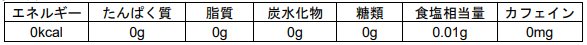 原材料名:炭酸、カラメル色素、酸味料、甘味料(スクラロース、アセスルファムK)、香料、カフェイン