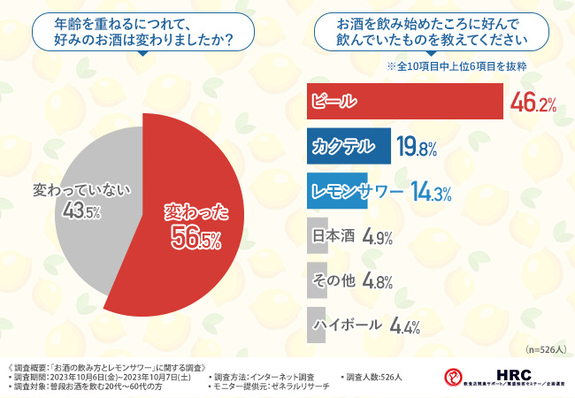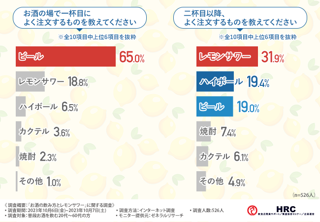 今回、マイナス60℃のレモンサワーを提供するネオ大衆 カモメヤ(https://taishurobata-kamomeya.gorp.jp/)を運営する合同会社HRCは、20代~60代のお酒を飲む方を対象に「お酒の飲み方とレモンサワー」に関する調査を実施しました。