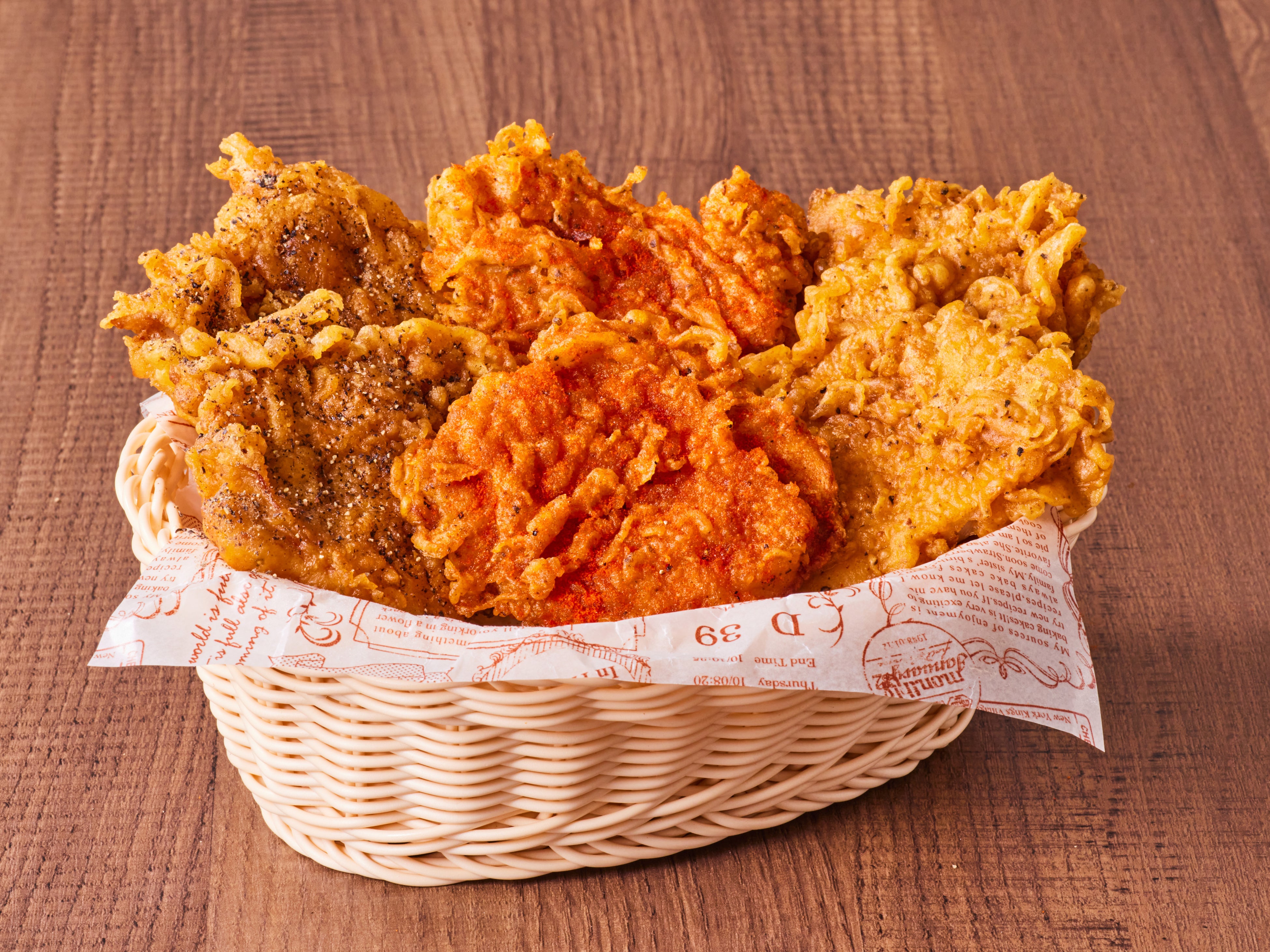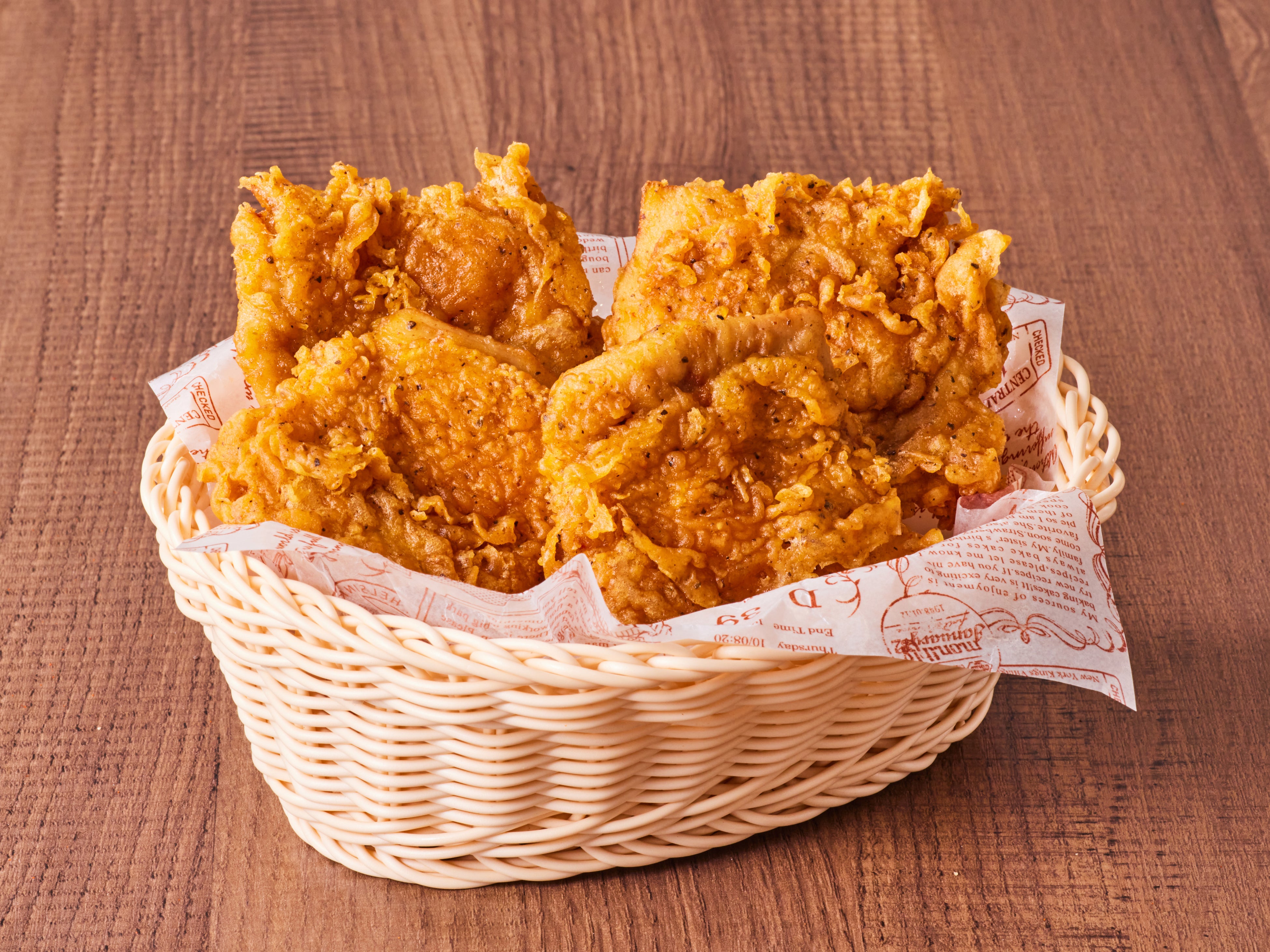 作りたての美味しさにこだわり、店内で生チキンに1枚ずつ丁寧に衣をつけて揚げているため、アツアツで新鮮な旨味たっぷり。