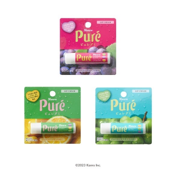 今回、ピュレグミを食べたときに広がるジューシーな香りをイメージした、“ハンドクリーム”と“リップクリーム”が登場します。バリエーションはピュレグミの定番フレーバーである“レモン”、“グレープ”、“マスカット”の3種類で、ピュレグミのフルーティーな味わいを香りで楽しむことができます。パッケージもピュレグミらしいバイカラーがおしゃれな持ち運びたくなるデザインに仕上げています。さらに、シアバター(シア脂)とヒアルロン酸(ヒアルロン酸Na)のうるおい成分を配合しており、これからの季節にぴったりのアイテムになっておりますので、ぜひお試しください。
