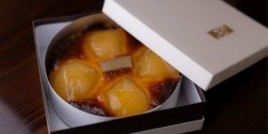 「タルトポワール」は、創業以来続く伝統のタルトで、40年以上にわたり山形県の契約農家「川口観光果樹園」とともに育んだ最高級の有機栽培ラ・フランスを使用しています。アーモンドと卵をたっぷり使ったそのまま食べても美味しい自慢のタルト台に、充分に追熟させたラ・フランスを生のまま乗せて焼き込むことで、果実の香りと果汁がじゅわっと染み込んだ焼きタルトに仕上がります。