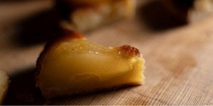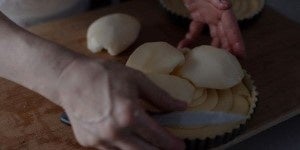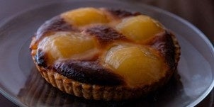 お菓子に合う熟れ具合「生で食べて一番美味しい、の一歩手前」を見極めてタルトに焼き込みます。
