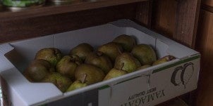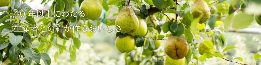 「タルトポワール」に使う果実は、日本一の生産量を誇る山形県産の有機栽培ラ・フランス。契約果樹園「川口観光果樹園」は、独自で調合した2年~3年ものの堆肥・ぼかし飼料を使って土づくりを行っており、大粒で甘みの強い高品質な果実を生産しています。特に「山の畑」と呼ばれる丘の傾斜に作られた果実棚で育てられるラ・フランスは、品質のばらつきが少ない高品質なものが多く採れます。そして今年も、レ・ザンジュの「タルトポワール」には、この山の畑のラ・フランスを使用します。