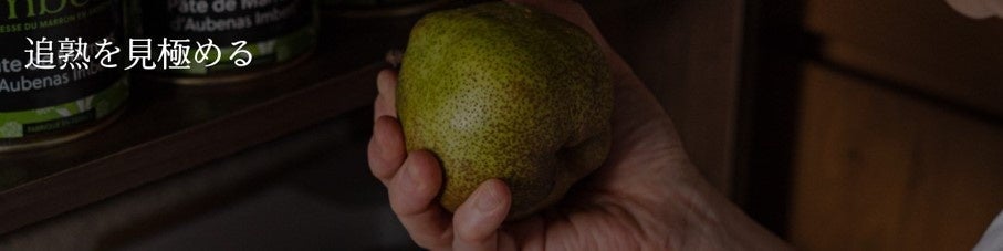 果樹農家から「時計仕掛けの果実」と称されるラ・ フランスは、収穫直後よりも充分な追熟を経て美味しくなる果実。適切な追熟具合を見極めることが最も大切で難しい果実を、レ・ザンジュのパティシエは40年以上に渡る経験値から判別し使用します。硬すぎず熟しすぎていない、手で包むと程よく柔らかく、指が馴染む瞬間を見極めるのです。