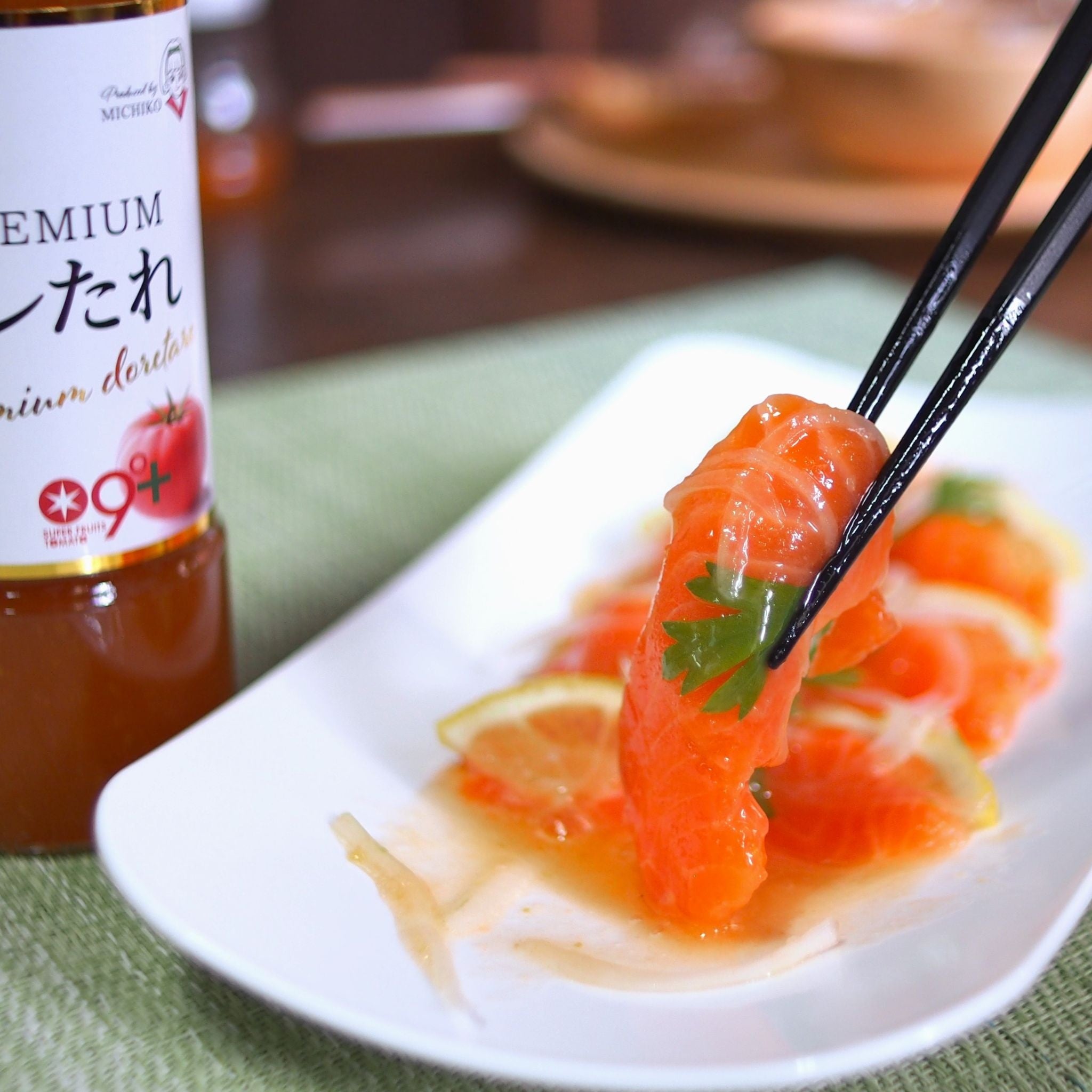 材料は、野菜ソムリエサミット2023年金賞受賞した糖度9°以上の最高に甘くて美味しいスーパーフルーツトマト、果汁たっぷりの花ゆず、香味野菜の玉ねぎとセロリ、江戸前寿司には欠かせない赤酢(米酢)、琥珀色をした旨みと香りのある白しょうゆ、焙煎していない風味とコクのある純正胡麻油白口を使った贅沢な“ドレッシングたれ”。です。なめらかな口当たりでうま味とコクのあるオイルは、全体の3%と量は控えめ。ダイエット目的にもおすすめです。たれほど塩味は強くなく、芳醇な香りと品のある甘さ、落ち着いた酸味、家庭で楽しめる上質な『ドレたれ』です。