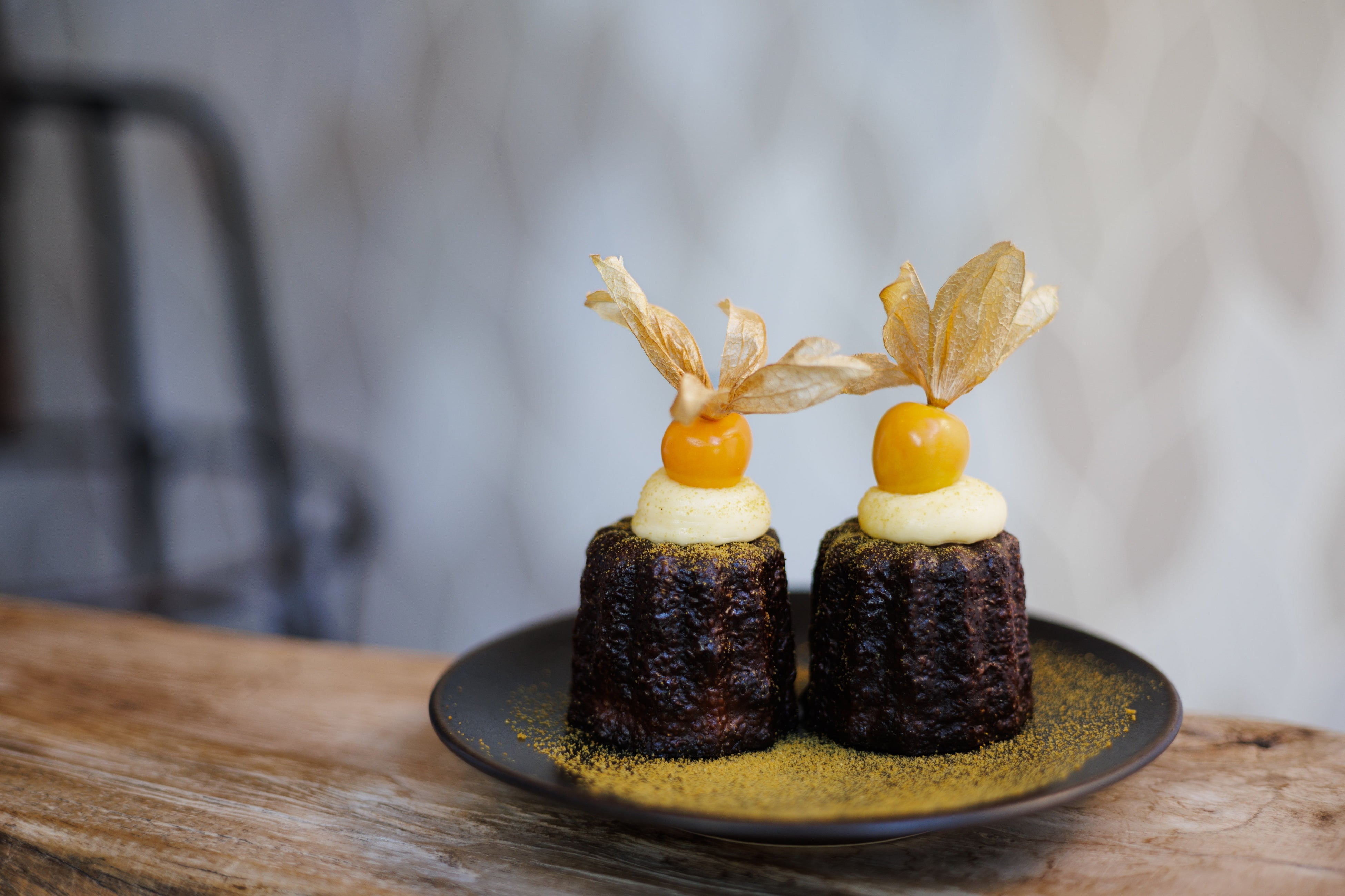 TREE特製カヌレも、鬼灯とマンダリンクリームをトッピングしたケーキ仕立てに。マンダリンクリームの程よい苦味の後で鬼灯の甘酸っぱく爽やかな味わいが口いっぱいに広がる余韻と、カヌレのカリッともっちりした食感とのコンビネーションを楽しめます。