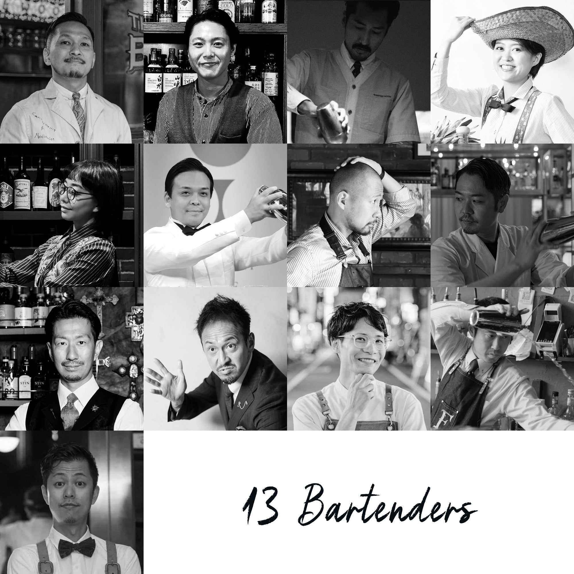 カクテルの大会で世界一に輝いたバーテンダーや日本チャンピオンを多数含む、13名の個性あふれるスペシャリストたちが、それぞれ世界中のスピリッツ・リキュールを用いたイベント限定のカクテルを考案。当日、会場にて来場者の目の前でカクテルを創作し提供します。