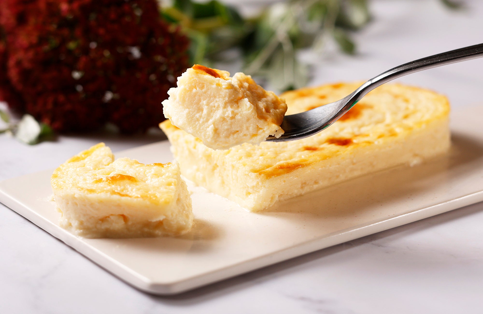 北海道産クリームチーズのコクとサワークリーム、レモンの爽やかな 酸味が効いたチーズケーキです。湯煎で焼き上げ、なめらかな口 当たりに仕上げました。