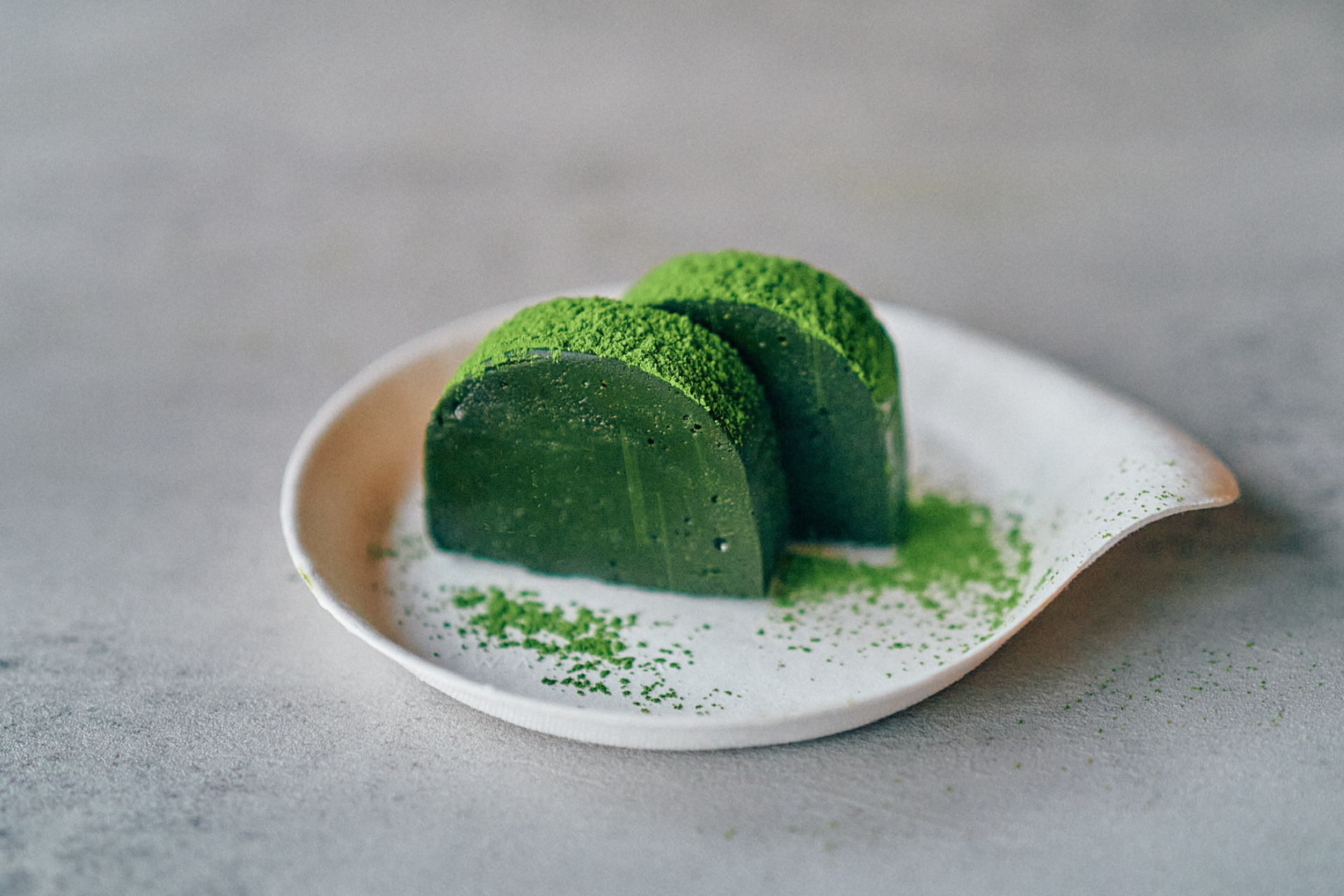 八十八良葉舎の人気商品「特濃抹茶テリーヌ」を堪能できるオリジナルプレート。まるで抹茶をそのまま食べているかのような感覚になる新体験の抹茶テリーヌ」です。良質な抹茶を使用することで抹茶をふんだんに入れても苦渋みが抑えられ、抹茶本来の味わいと香りをお楽しみいただけます。舌触りに直で抹茶そのものの旨みを存分に味わえるため、驚くほどに心地よい余韻を残してくれます。八十八看板商品の抹茶ラテとも相性抜群です。