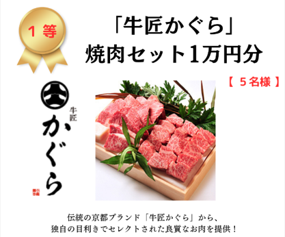 「京都・肉巡礼2023」では、京都の焼肉店の繁盛・繫栄や京都の新たな焼肉文化の創出を目指して活動する「京都焼肉つむぐ会」とコラボし、お得なイベントを開催。menuと電子マネーサービスau PAYをご利用いただくことでお得に楽しめるクーポンを配布する他、対象店舗を巡るスタンプラリーに参加していただくと、一棟貸し高級プライベートヴィラのペア宿泊券(BBQセット付)や、焼肉セット1万円分など、豪華景品が当たる抽選会にご参加いただけます。