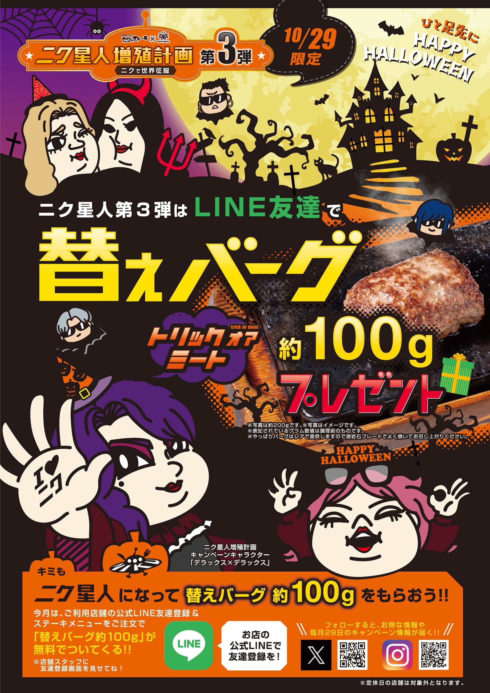 ■今月も開催!【ニク星人増殖計画第3弾】LINE友達登録でお得にお食事を!