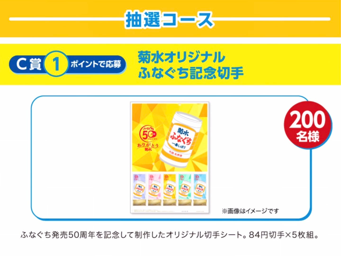 C賞 1ポイントで応募 200名様 「菊水オリジナル ふなぐち記念切手」