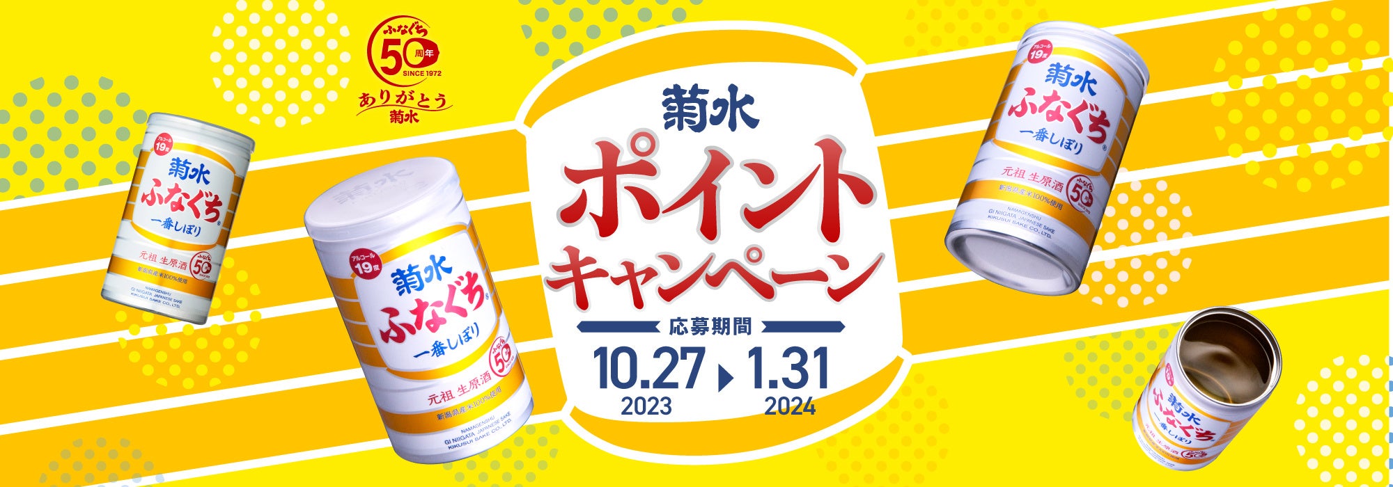 菊水酒造株式会社(本社:新潟県新発田市、代表取締役:髙澤大介)は、「菊水ふなぐち」発売50周年の感謝企画として「菊水ポイントキャンペーン」の第四弾を2023年10月27日(金)より実施いたします。