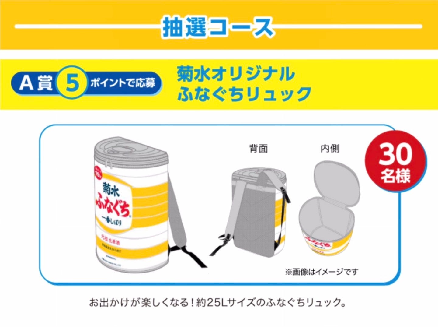 A賞 5ポイントで応募 30名様 「菊水オリジナル ふなぐちリュック」