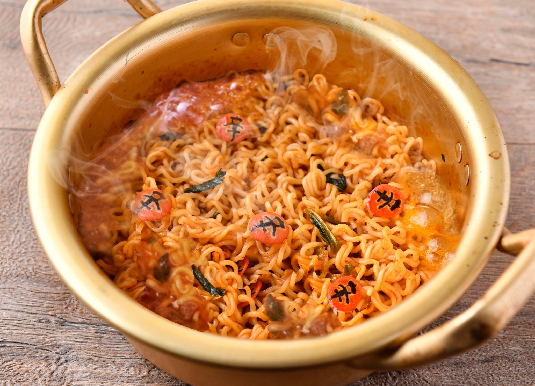 韓国激辛ラーメンの代表格「辛ラーメン」+「トッポギ」を組み合わせた大人気の韓国B級グルメ!※単品/900(税込)