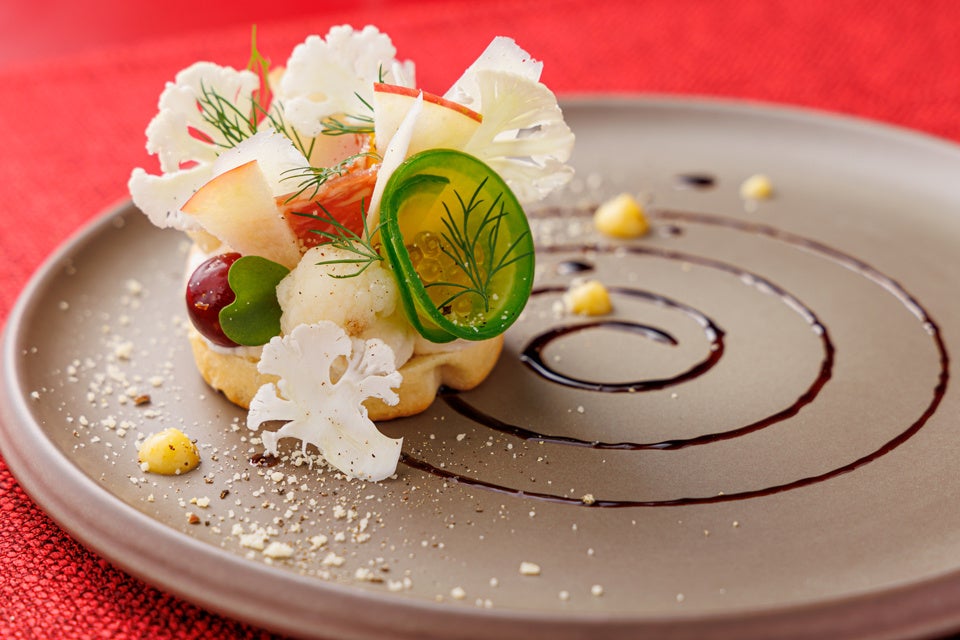 七面鳥のムースとリンゴとカリフラワーのアンサンブル