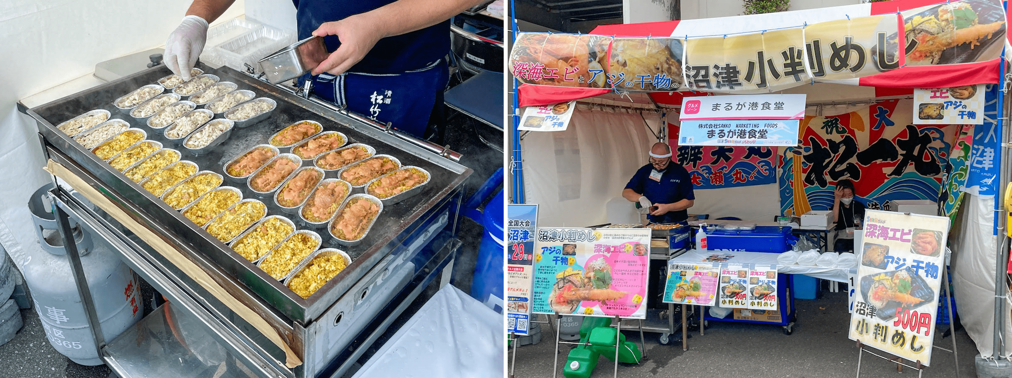 下田から自分たちで漁に出て、沼津に水産加工場をもつ当社にとって静岡県は縁深い土地です。この度、海にまつわるご当地グルメがあつまる「みなとオアシスSea級グルメ全国大会」に【深海えびとアジの沼津小判めし】の販売で出店いたします。