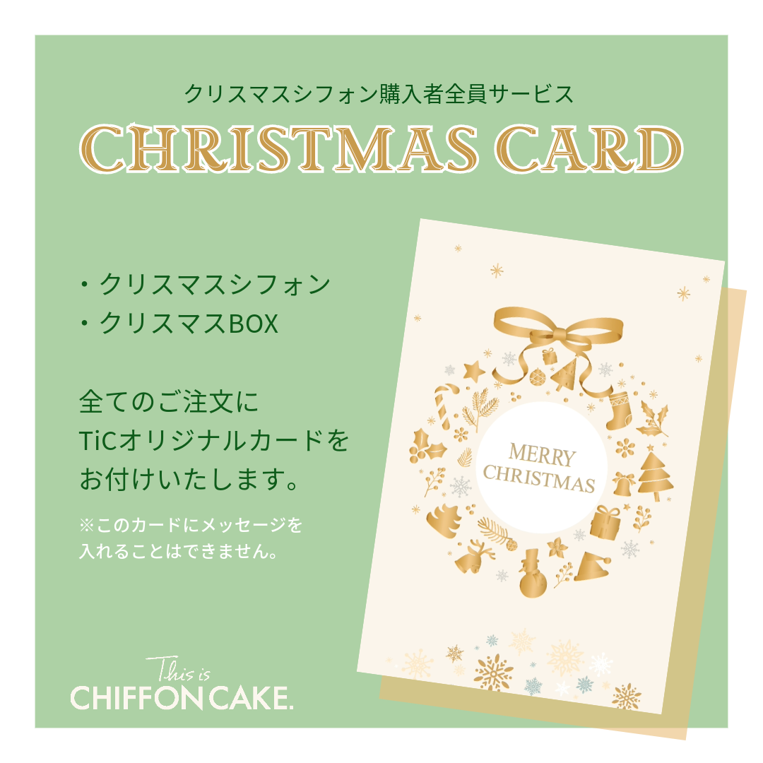 This is CHIFFON CAKE.は、2023年クリスマス商品のご注文全てに「オリジナルクリスマスカード」をご用意いたします。