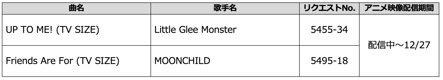 エンディングテーマ MOONCHILD「Friends Are For (TV SIZE)」