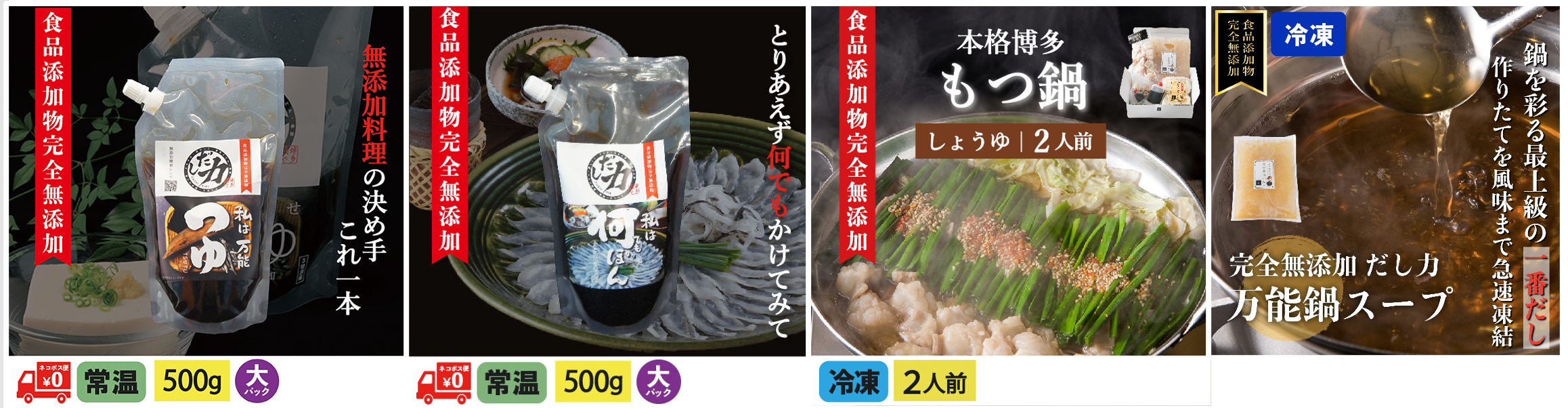 完全無添加にこだわり抜いた、本場博多唯一の「名店」の味をご家庭で。和食の基本にこだわり続け、研究を重ねた果てにたどりついた答え。それが『だし力』シリーズです。