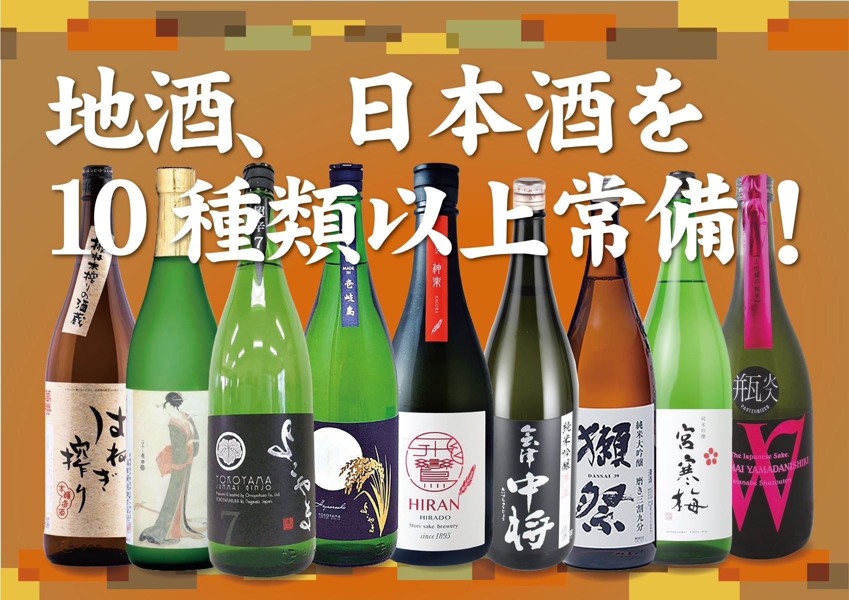 日本酒・地酒は10種類以上!ほぼ原価で飲めるコースも登場!