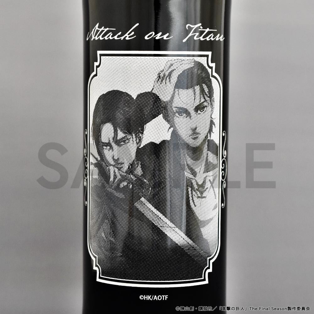 ボトルにはエレンとリヴァイのイラストを、グラスには“ATTACK on TITAN 10th ANNIVERSARY”のロゴをそれぞれ特殊技術で再現しました。