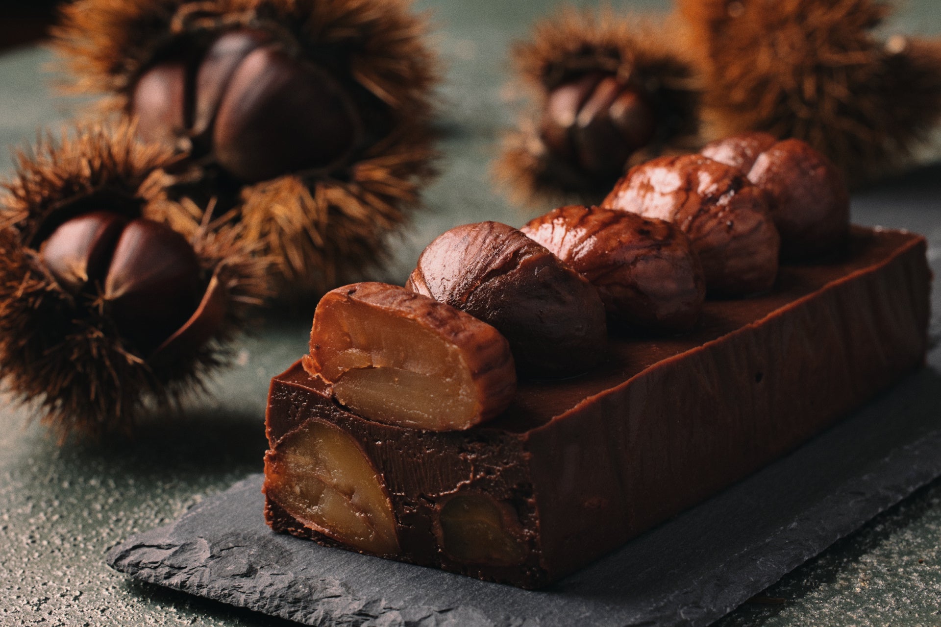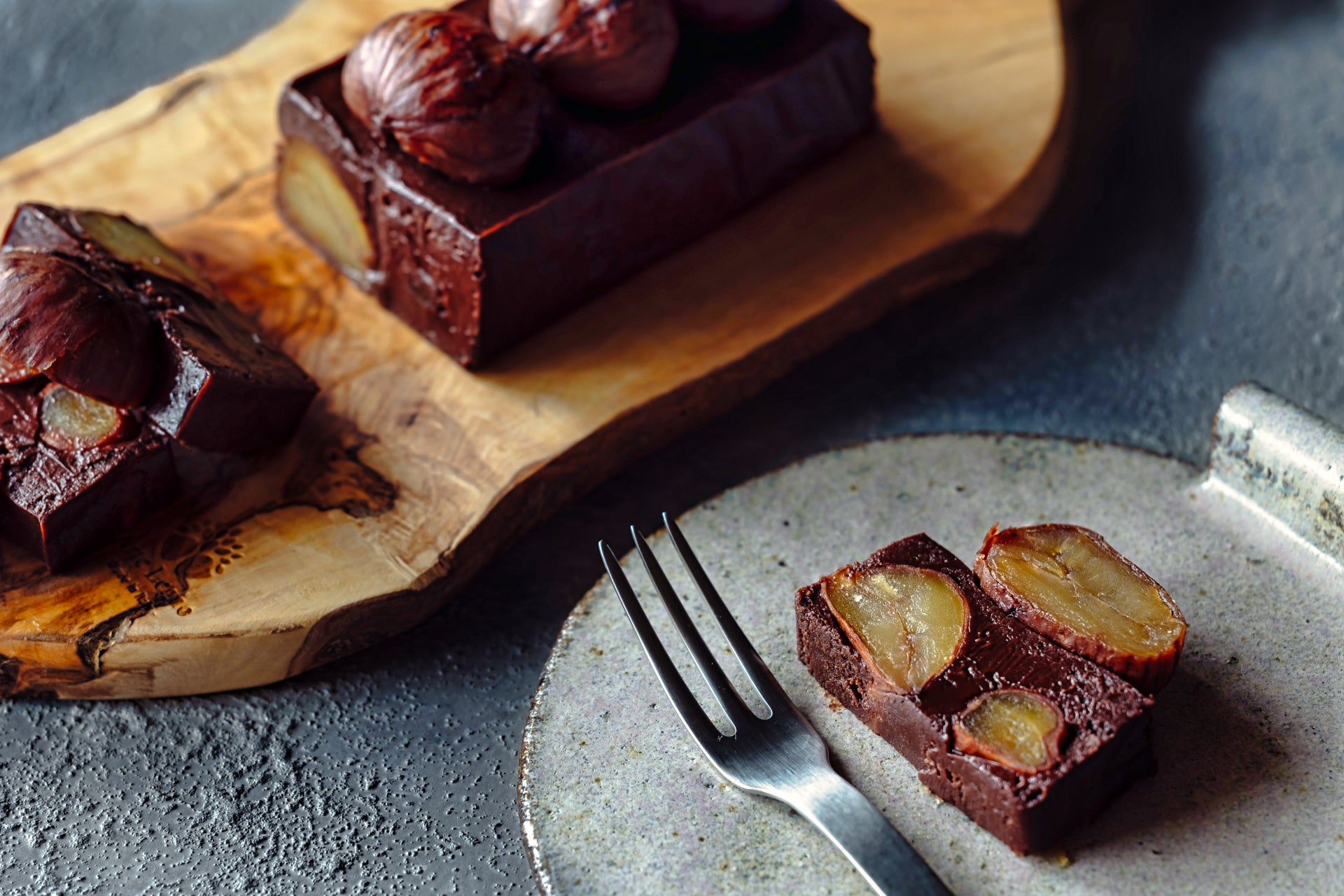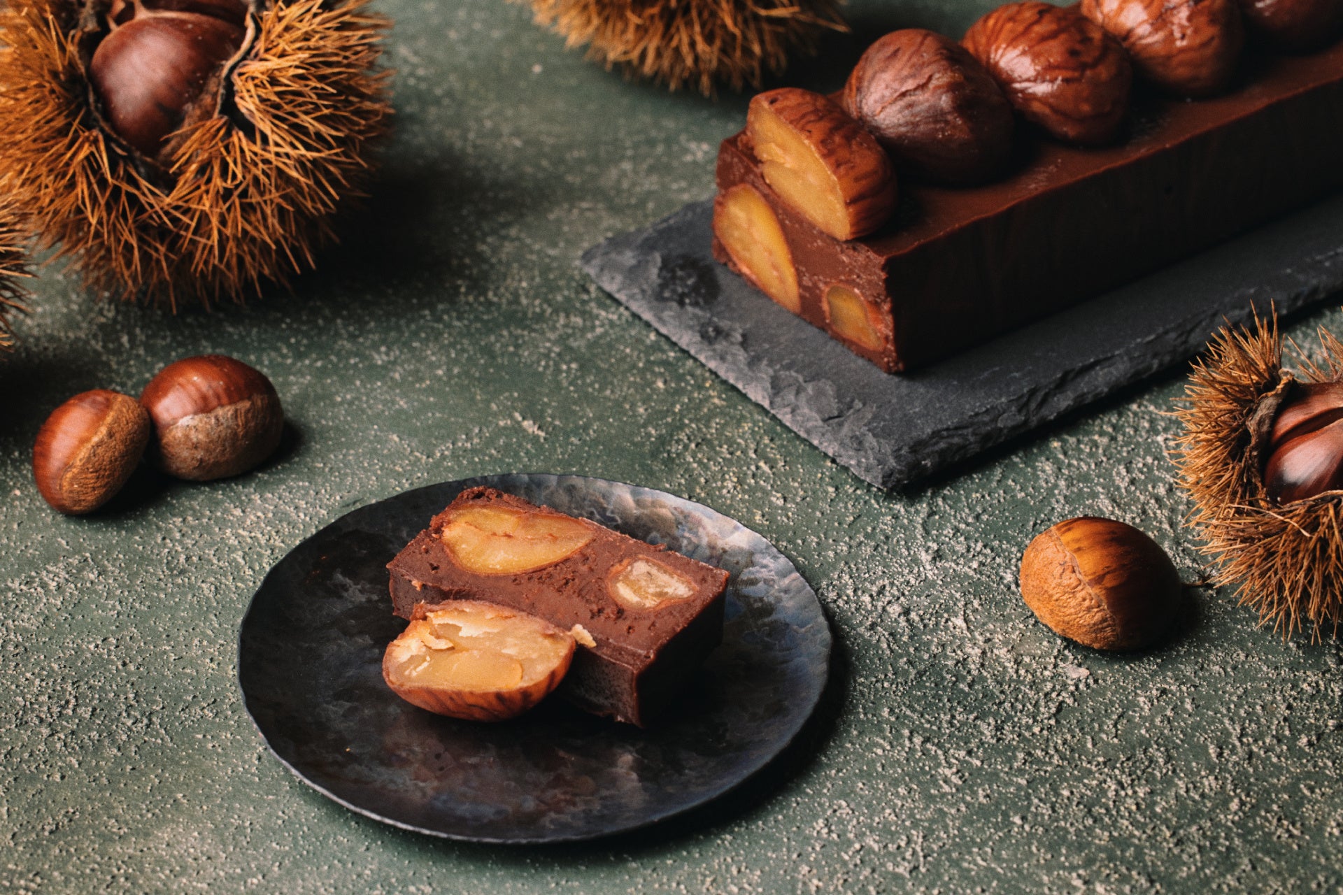 和栗特有の甘さと香ばしさと噛み心地とともに、なめらかで濃厚なテリーヌショコラのおいしさを、ひと口ごとにお楽しみいただけます。