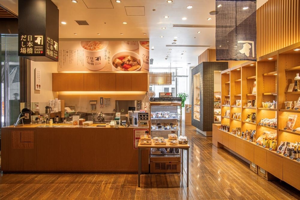 日本橋だし場 本店は、2010年のCOREDO室町1開業に際し、だしを知る・楽しむ・味わう場、だしコミュニティとしてオープンした鰹節専門店にんべん初の飲食業態です。本格的なだしが味わえる「かつお節だし」が人気を集め、本物のだしの美味しさに出会える場、だし専門店としてたくさんのお客様にご愛顧いただいております。「かつお節だし」や月替わりの「だしスープ」、「かつぶしめし」などの各種メニューには、にんべんがこだわり続ける本枯鰹節を使用しています。